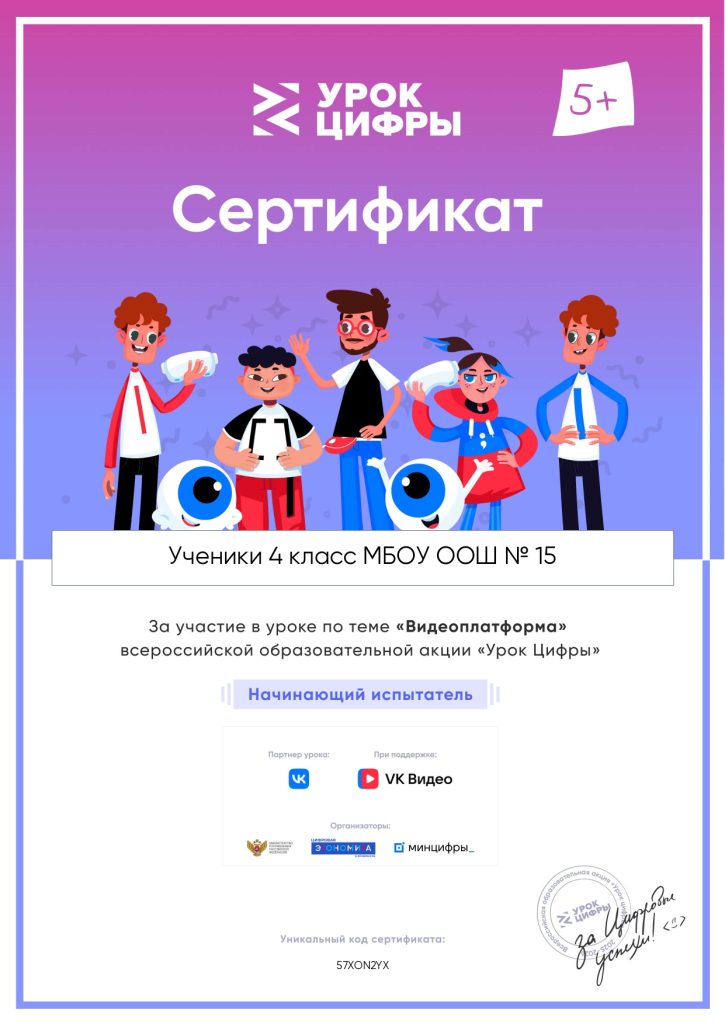 Учащиеся МБОУ ООШ № 15 прошли урок по теме “Видеоплатформа”, на платформе “Урок Цифры”.